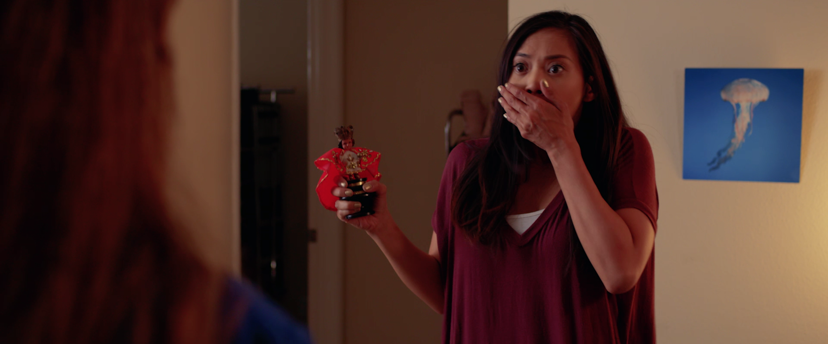Not only is Faith (Mariana Alencar) a beautiful and confident barista, she’s also mean-spirited and casually racist, particularly towards Asians. But things change for the attractive white girl when her roommate, Vanessa, (Grace Santos) gives her a Santo Niño statue as a gift from her vacation in the Philippines and suggests praying to find true love. Being secretly lonely, Faith takes her advice but her prayer turns her into a short, tanned Filipino girl (Meriden Villanueva) instead. She is greeted by a life-like version of Santo Niño named Ninang (Mary Grant) who explains that in order to change back, she needs to be kinder to others and to kiss a Filipino guy. However, Faith struggles to adjust to her new racial identity and rushes to kiss her co-worker, Elmer (Ian Jerome Kumus). When she finally kisses Elmer, we learn that she isn’t the only one who was under Ninang’s spell.