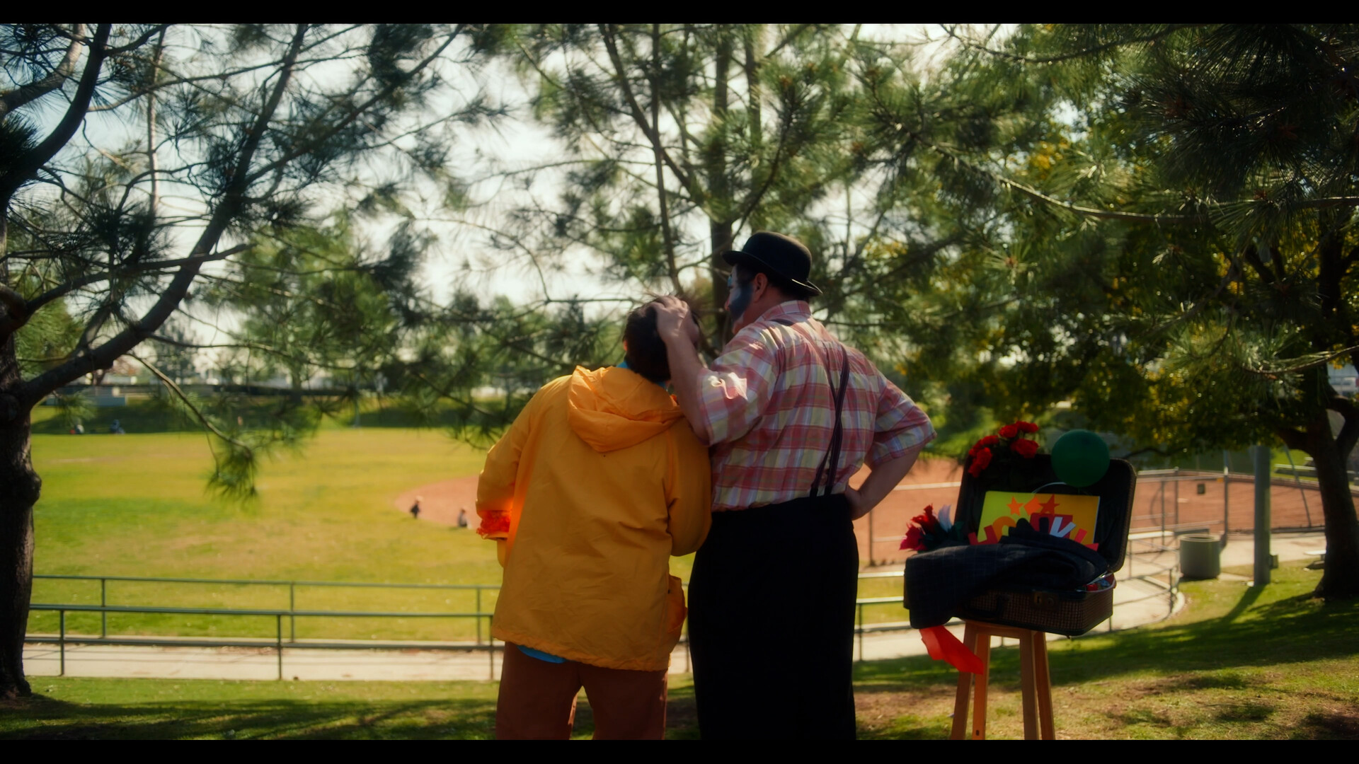 After his mentee, Bubbles, dies in a trick-gone-wrong, park-clown Honky B. Honky delivers a bitter eulogy that recounts memories of how their relationship changed from fondness and pride to resentment and jealousy. At the end of the eulogy, a weeping Honky concludes that Bubbles was the only one who understood him most. As he saunters away from the podium, clowns start bursting out from inside the casket in clown-car fashion; Bubbles emerges at last from the casket—executing his “greatest trick of a lifetime” to restore his friendship with Honky. |