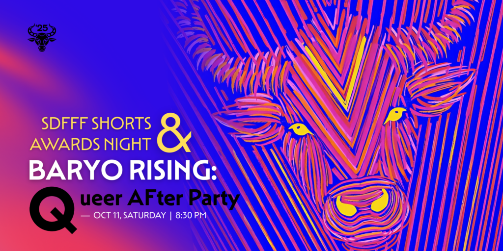 Join us for the Community Screening of The Road to Sydney by Benito Bautista. Your ticket includes entry to SDFFF Shorts Awarding Ceremony and the Baryo Rising: Queer AFter Party. Enjoy a night of yummy eats, drinks, and dancing, featuring DJ Kasama as Baryo Rising’s Headliner, with special guest vinyl DJ, Danica Satumbaga.